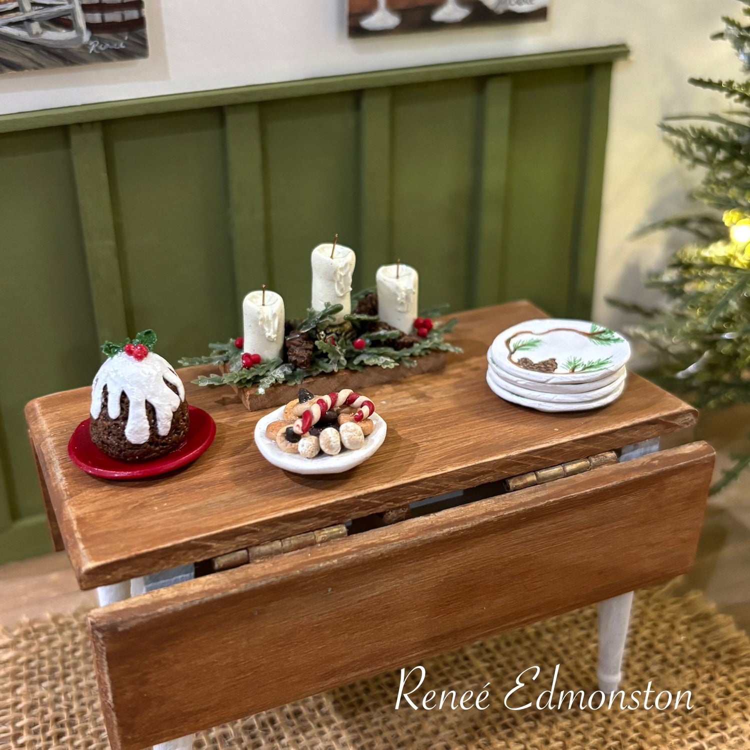 I’m Renee' Edmonston, a miniature artist bringing small-scale dreams to life. As a miniature artist and model maker, I specialize in creating unique and limited-edition works in 1:12 scale. Every piece begins with pure imagination and is brought to life through sculpting, illustration, and painting — all meticulously done by hand. No molds, stamps, pre-designed prints, patterns or kits used.