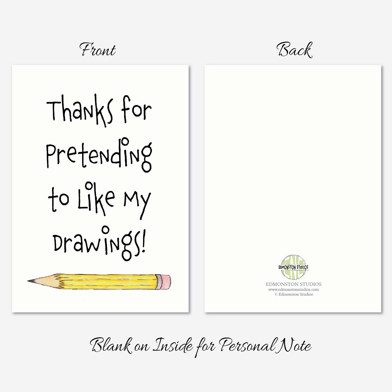 Funny Mothers Day Card, Thanks for Pretending to Like My Drawings, Humorous Mom Card: A7 5x7 on Textured Linen